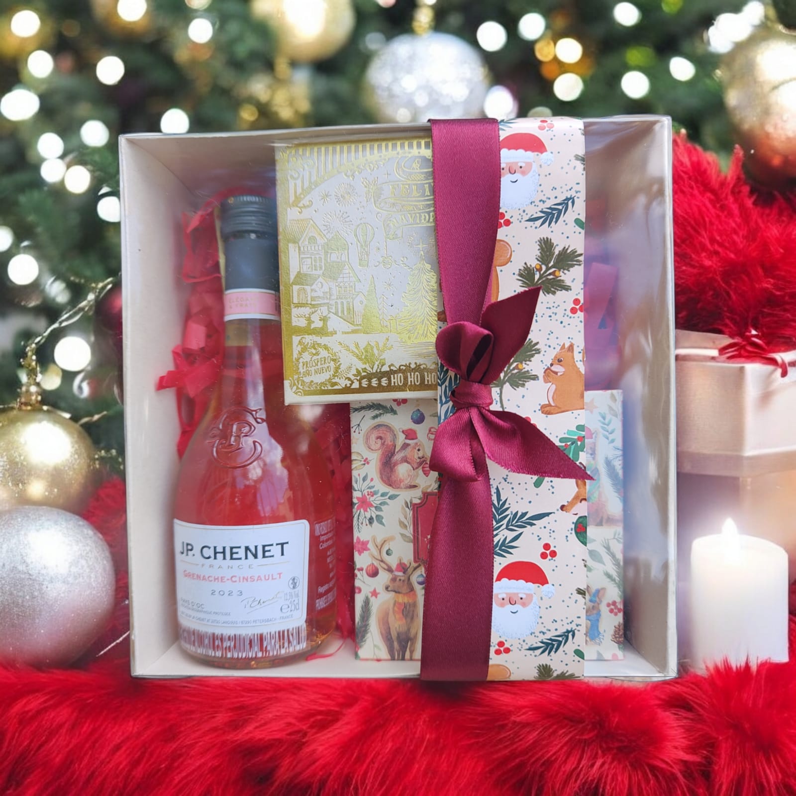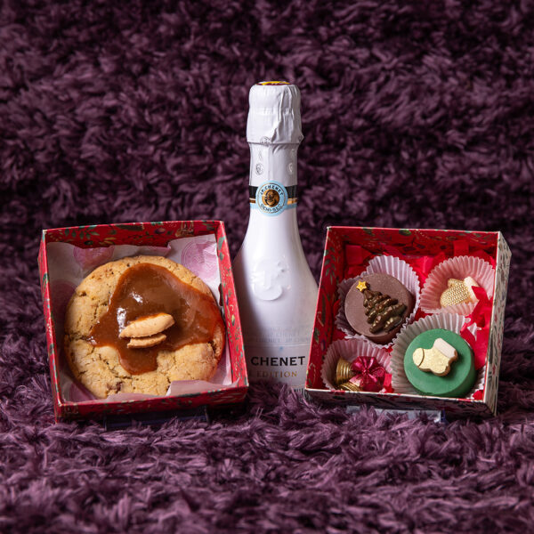 Caja navideña: 2 cilindros rellenos y dos chocolates sin relleno