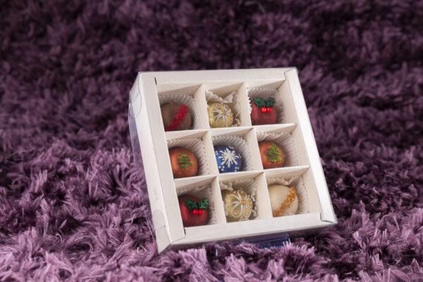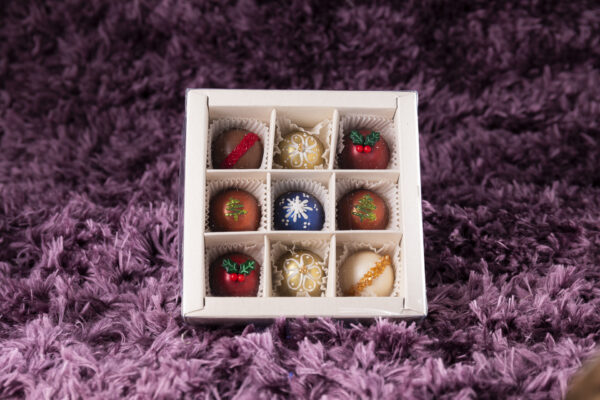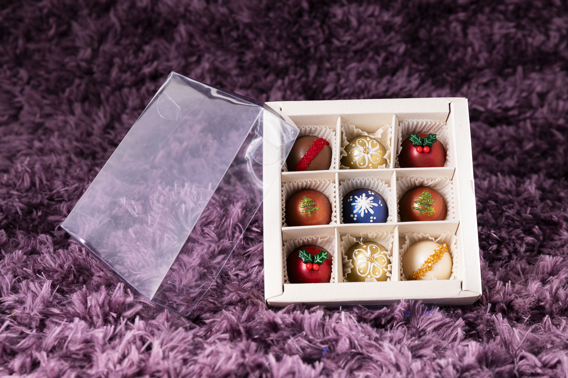 Caja de 9 chocolates rellenos, de 3cm de diámetro en forma de bombones de chocolate ¡Elige el sabor que prefieras!