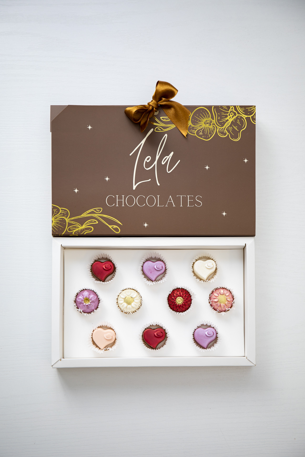 En Lela Chocolates usamos chocolates de origen Colombiano fino de aroma, reconocidos mundialmente por su calidad y complejidad de sabor. Trabajamos con una amplia variedad de perfiles: chocolate blanco, dulce con leche, semiamargo al 58%, amargo al 70% y sin azúcar, lo que nos permite ofrecer una experiencia diversa y equilibrada para cada paladar.