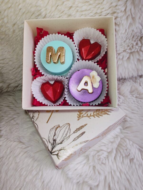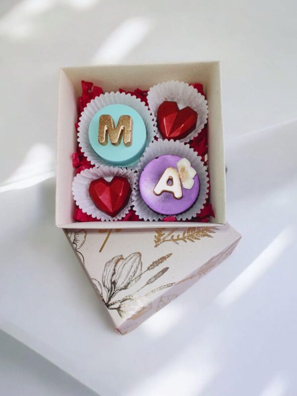 Caja de chocolates decorados delicada y cuidadosamente a mano especialmente para el ser mas importante, Mamá!